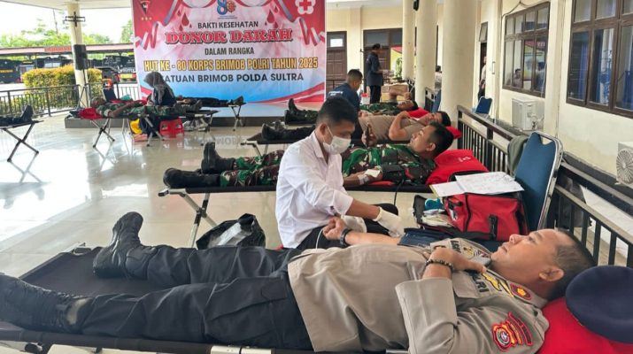 Kendari — Dalam rangka menyambut Hari Ulang Tahun (HUT) ke-80 Korps Brimob Polri yang jatuh pada 14 November 2025, Satuan Brimob Polda Sulawesi Tenggara (Sultra) menggelar kegiatan bakti kesehatan berupa donor darah dan khitanan massal di Makosat Brimob Polda Sultra, Selasa (11/11/2025).