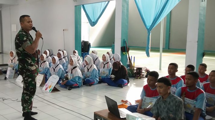 Kab Kuningan – Danramil 0615-10/Cilimus, Kapten Inf Saniyo beserta 3 orang Babinsa, melaksanakan kegiatan penyuluhan tentang pencegahan kenakalan remaja dan bullying serta praktek Pengamanan Bela Negara di Aula Ponpes Terpadu Al-Mutawally, Desa Bojong, Kecamatan Cilimus, Rabu (7/1/2026).
