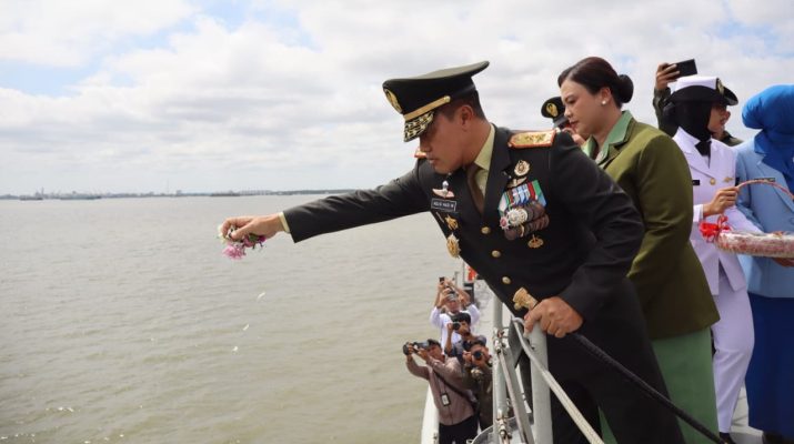 Kota Dumai – Dalam rangka memperingati Hari Pahlawan Nasional tahun 2025, Pangdam XIX/Tuanku Tambusai, Mayjen TNI Dr. Agus Hadi Waluyo, S.A.P., M.M., CHRMP., memimpin kegiatan tabur bunga di atas KRI Sultan Thaha Sayfuddin wilayah Perairan Dumai, Kec. Sungai Sembilan-Kota Dumai Provinsi Riau pada Senin (10/11/2025).