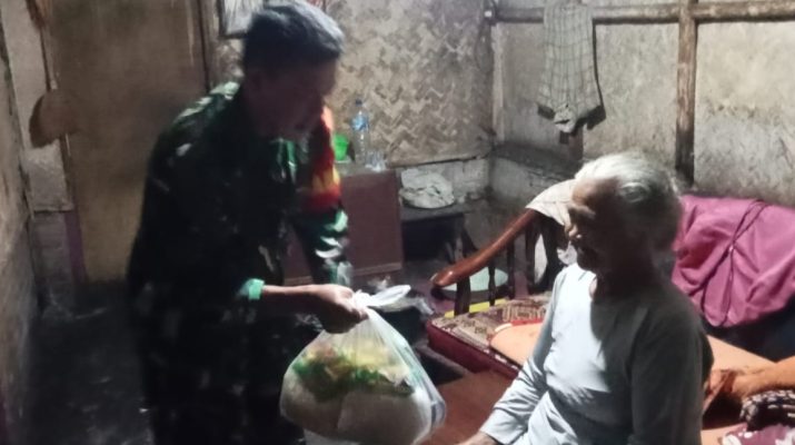 Kepedulian Babinsa Koramil Waled di Desa Binaannya : Berbagi Sembako Jelang Ramadhan